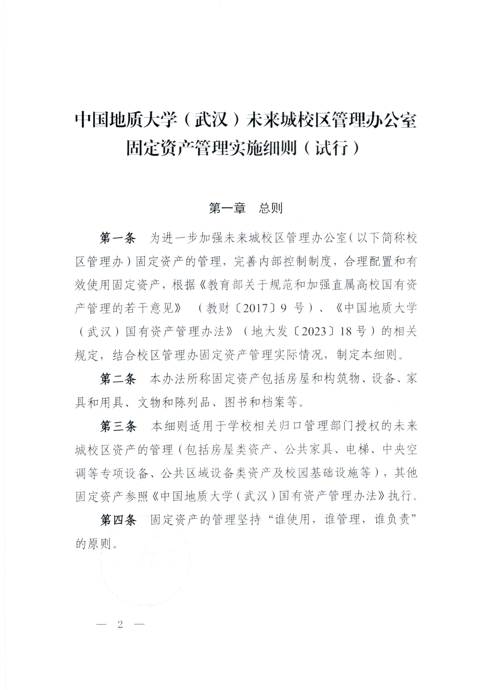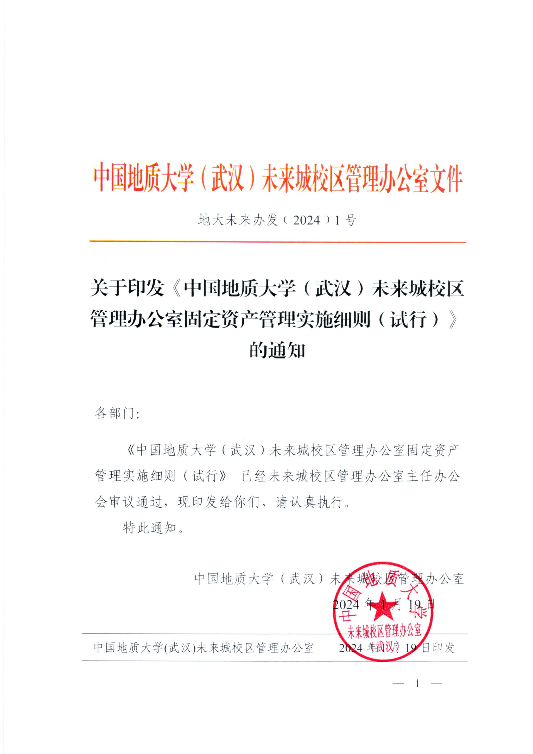关于印发中国地质大学(武汉)未来城校区管理办公室固定资产管理实施细则(试行)的通知(地大未来办发(2024)1号)