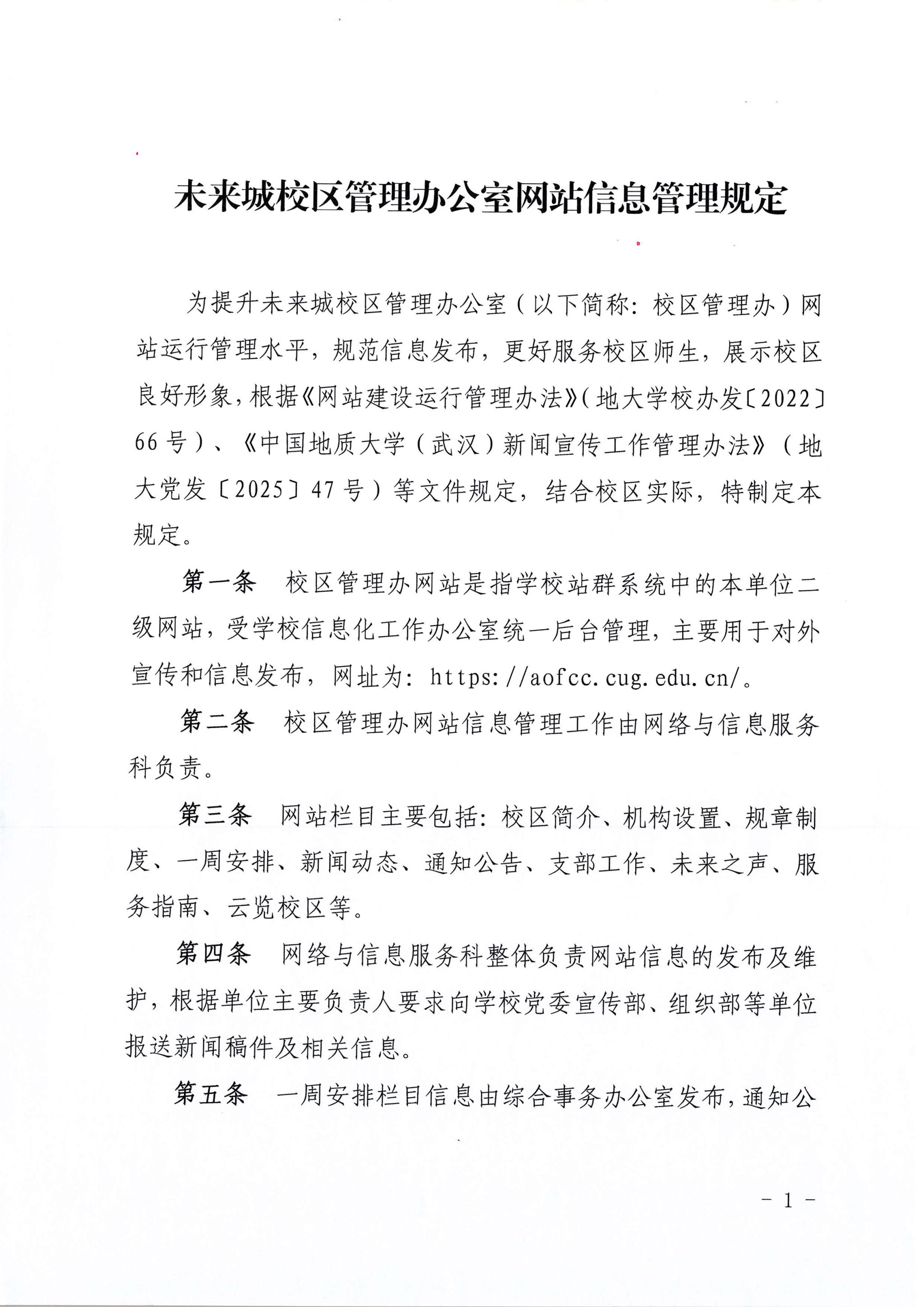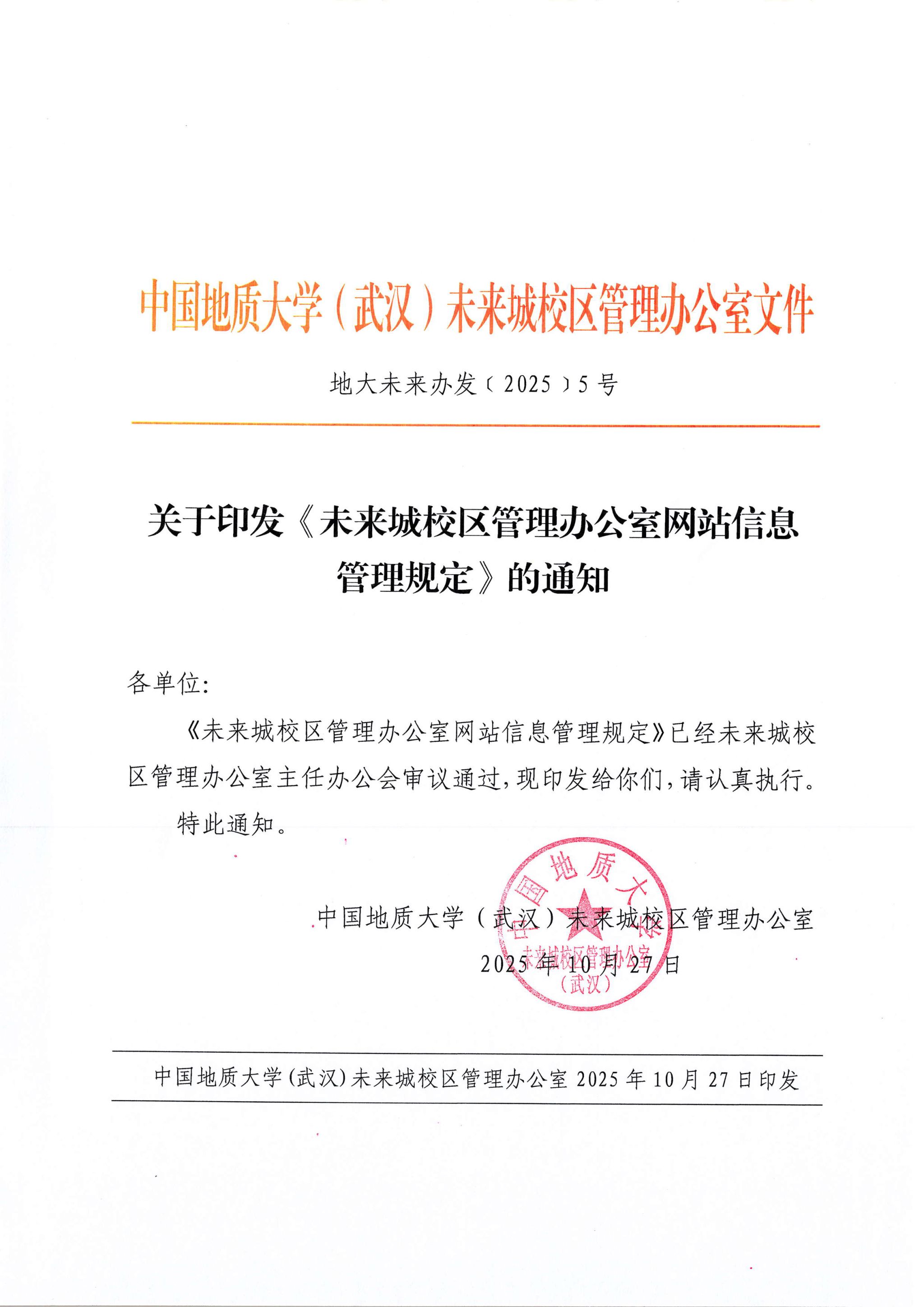 关于印发《未来城校区管理办公室网站信息管理规定》的通知(地大未来办发(2025)5号))