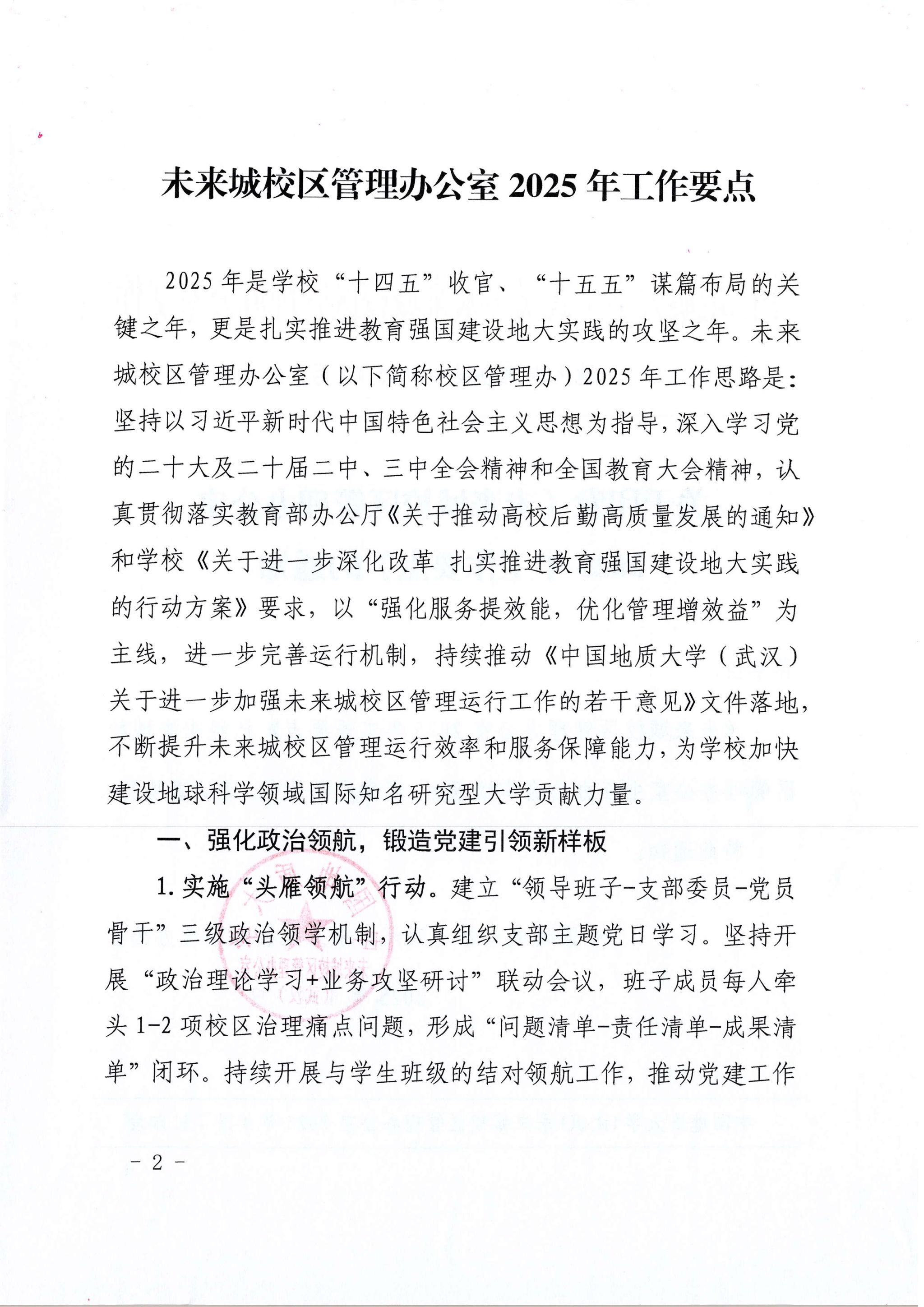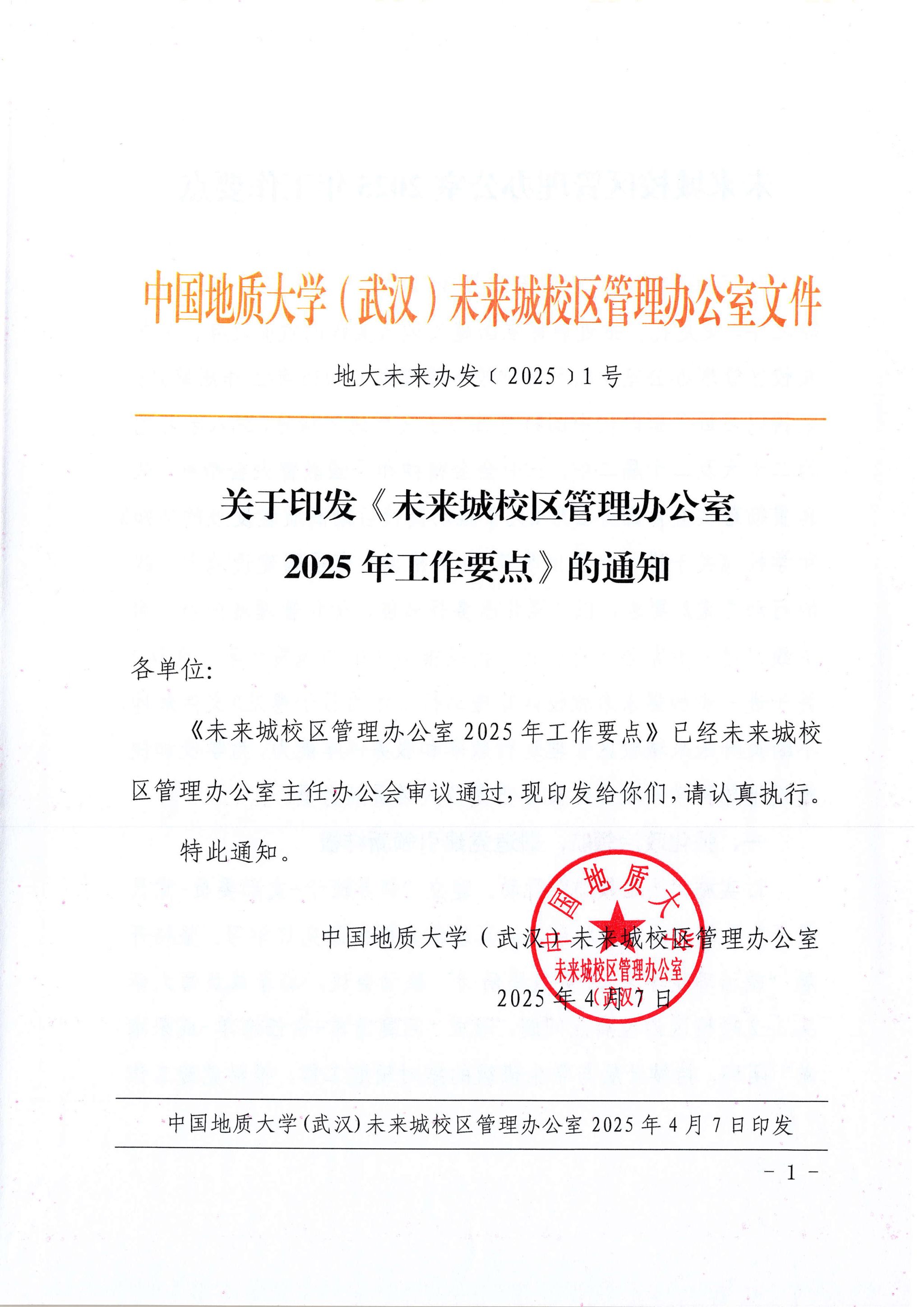 关于印发《未来城校区管理办公室2025年工作要点》的通知(地大未来办发﹝2025﹞1号 )
