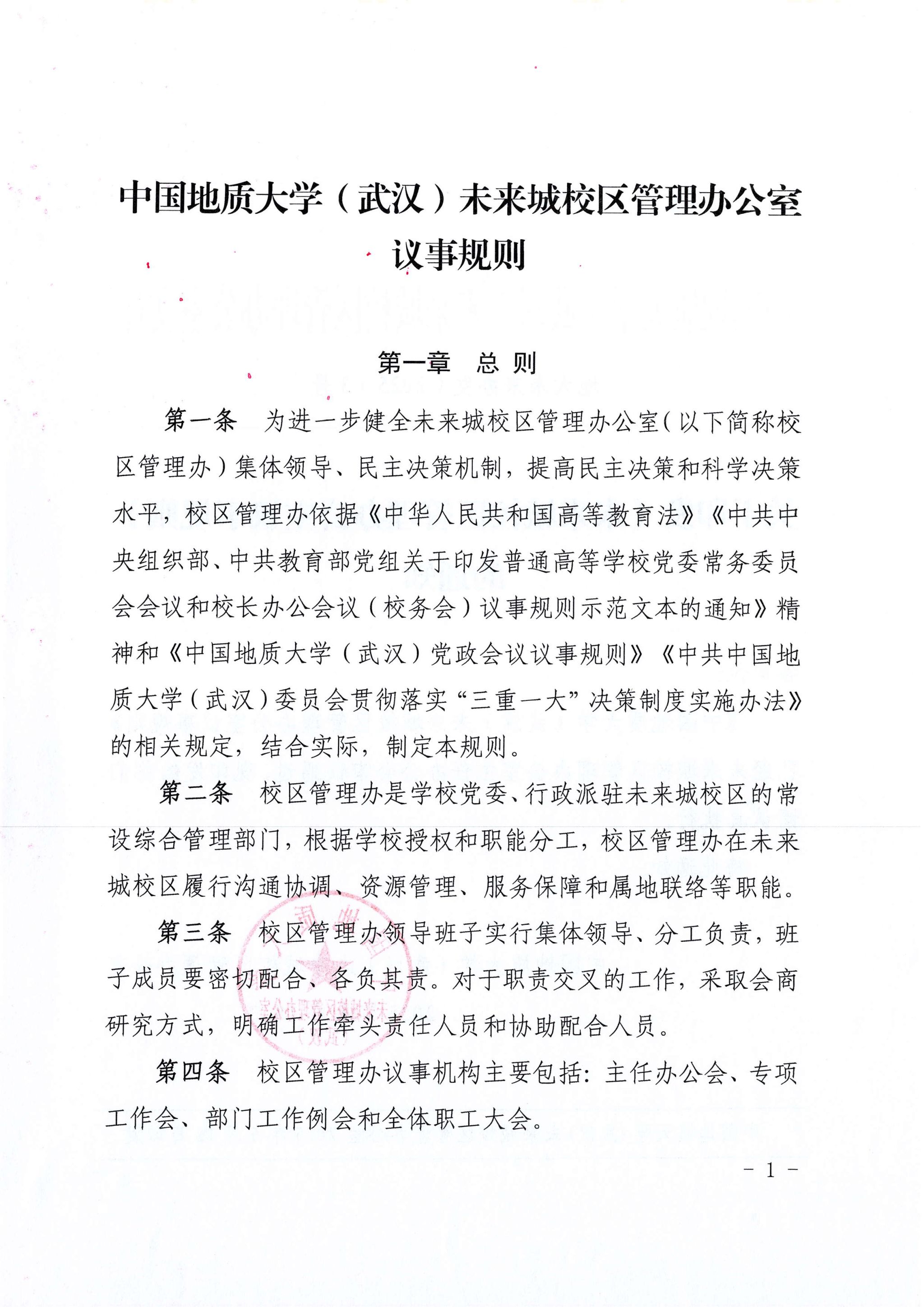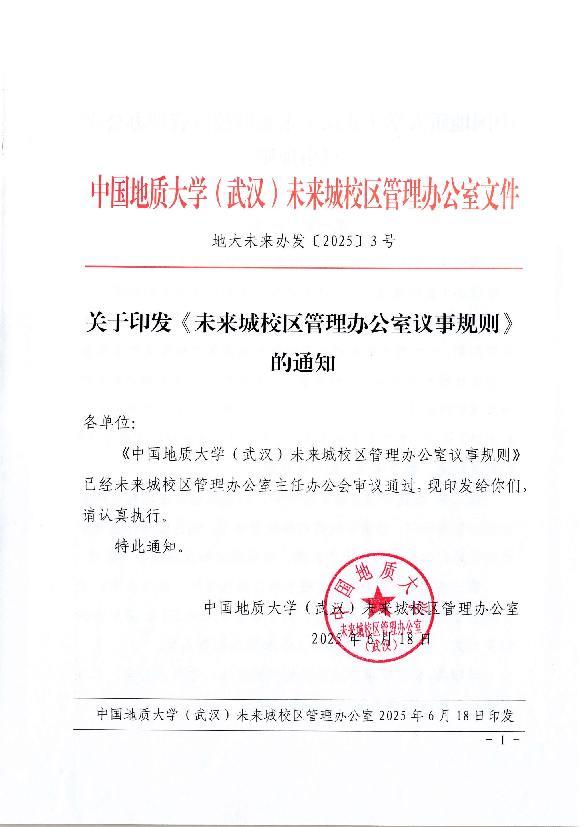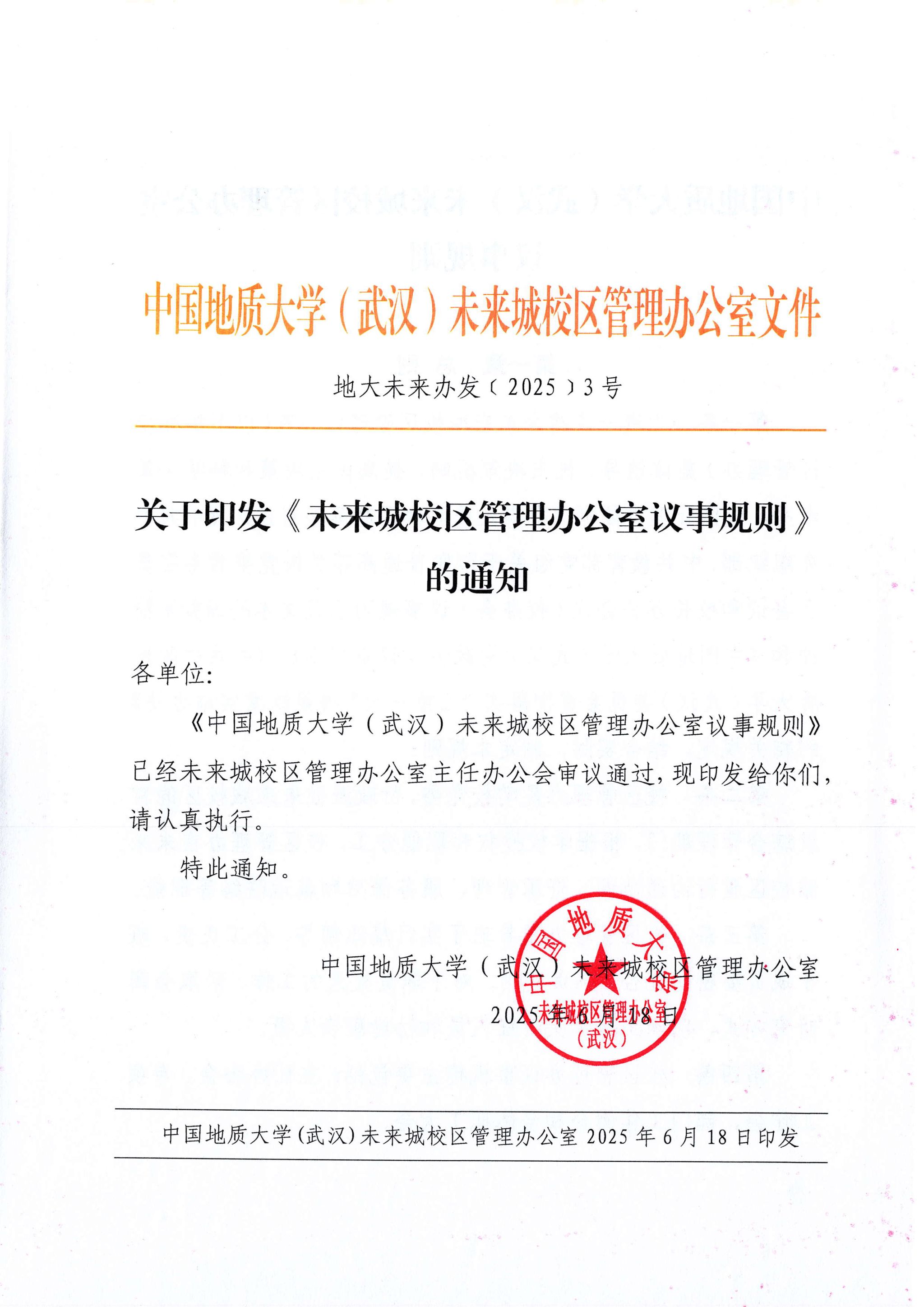 关于印发《未来城校区管理办公室议事规则》的通知(地大未来办发﹝2025﹞3号 )