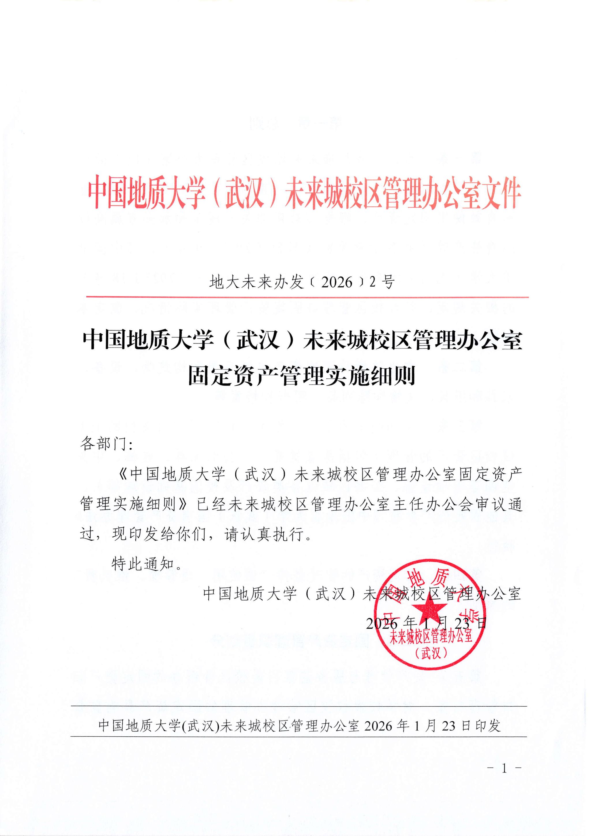 中国地质大学(武汉)未来城校区管理办公室固定资产管理实施细则(地大未来办发﹝2026﹞2号)