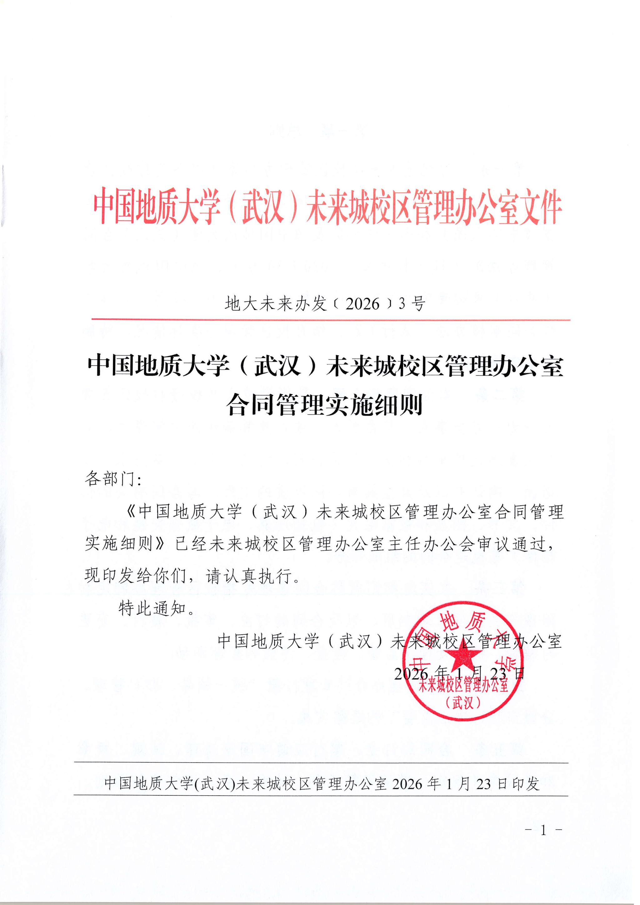 中国地质大学(武汉)未来城校区管理办公室合同管理实施细则(地大未来办发﹝2026﹞3号)