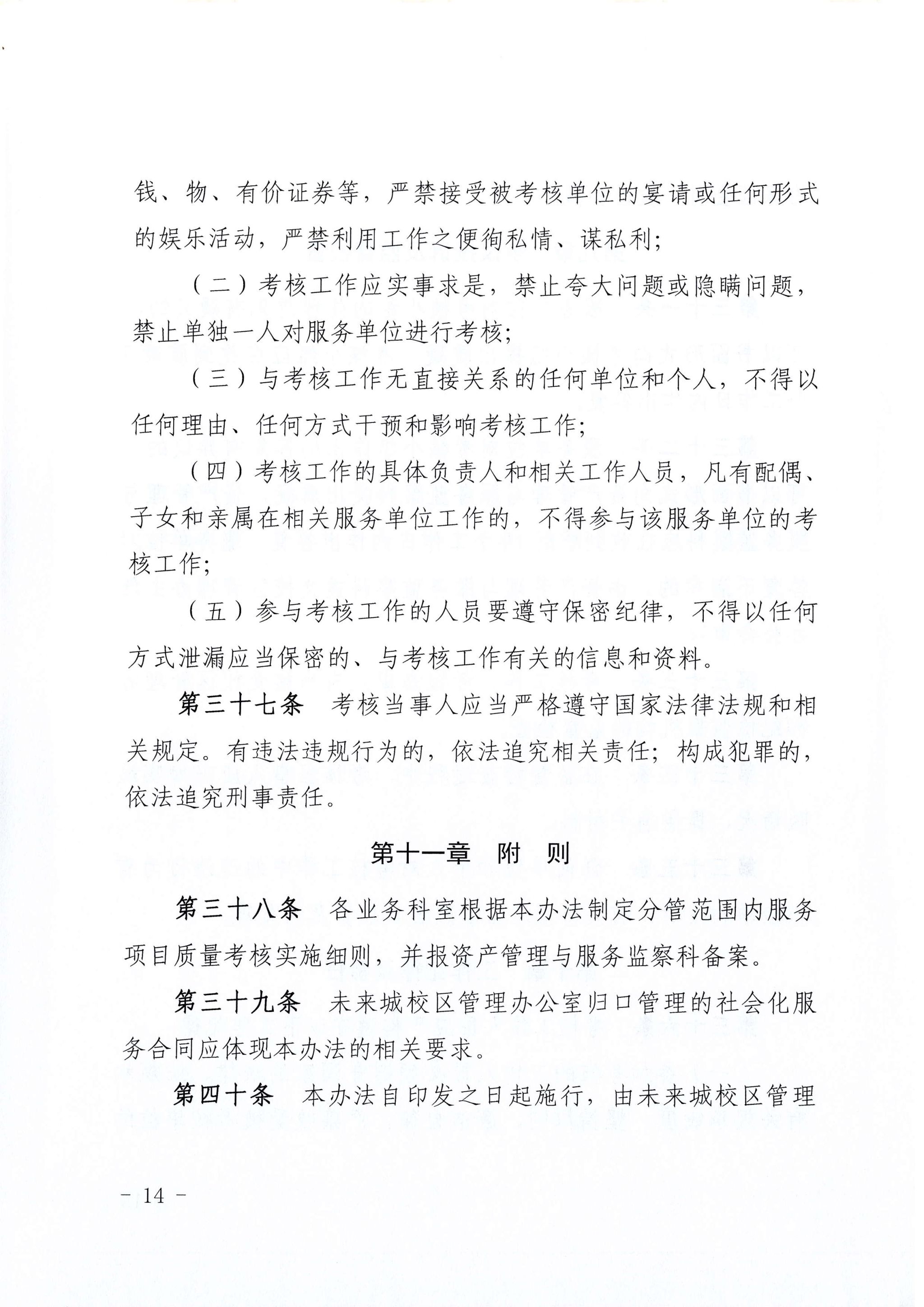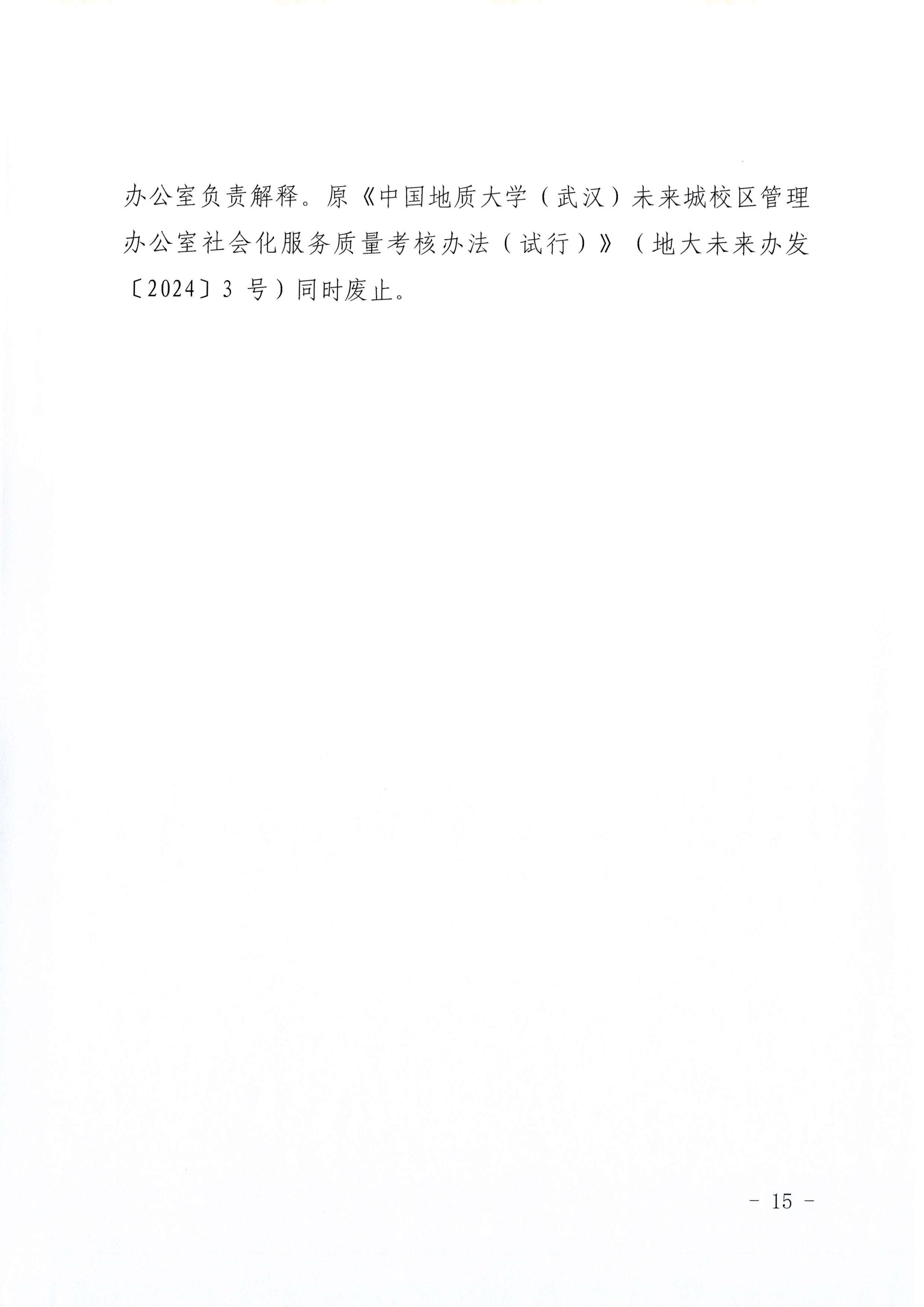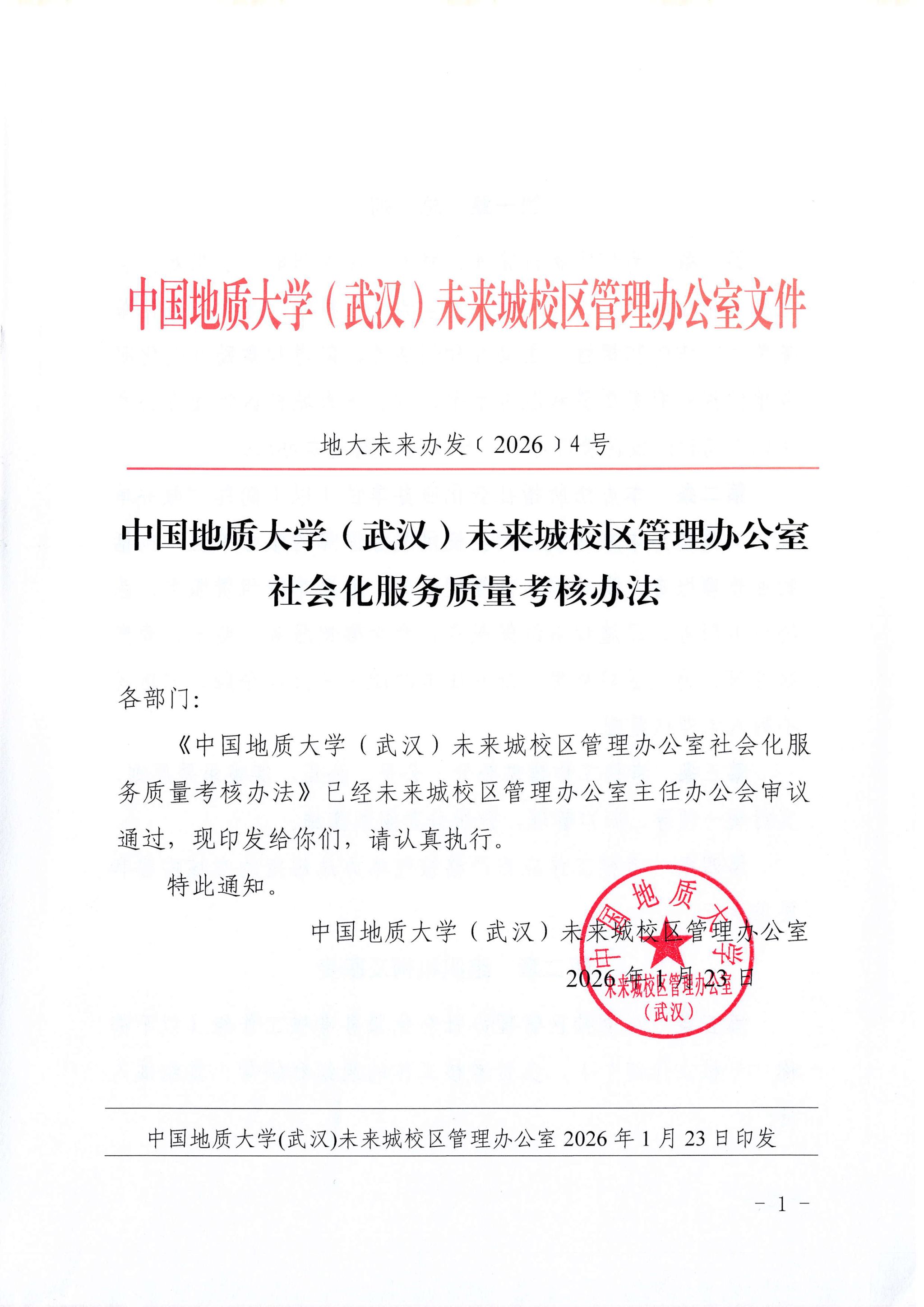 中国地质大学(武汉)未来城校区管理办公室社会化服务质量考核办法(地大未来办发﹝2026﹞4号)