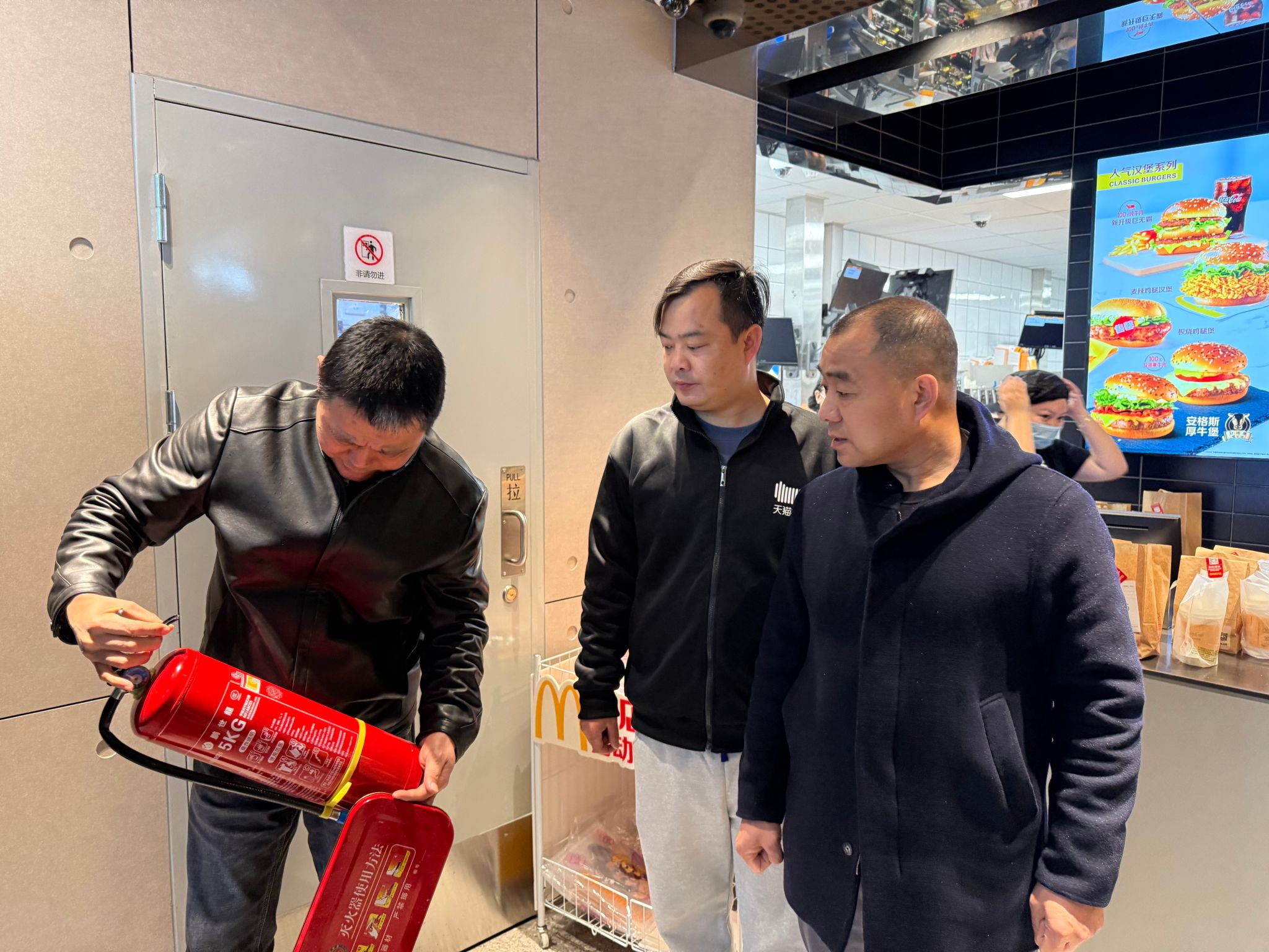 食堂商超区域重点检查燃气使用安全、厨房油烟管道清理、消防器材配备维护、用火用电操作规程落实等情况,详细查阅消防安全巡查记录、员工消防安全培训台账,针对部分商户消防器材摆放不规范、应急处置预案不完善等问题,现场进行指导纠正,要求相关负责人立即整改到位。